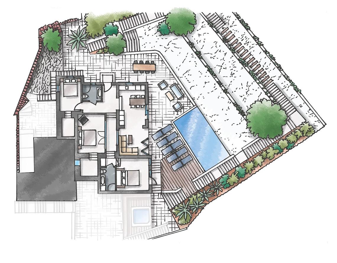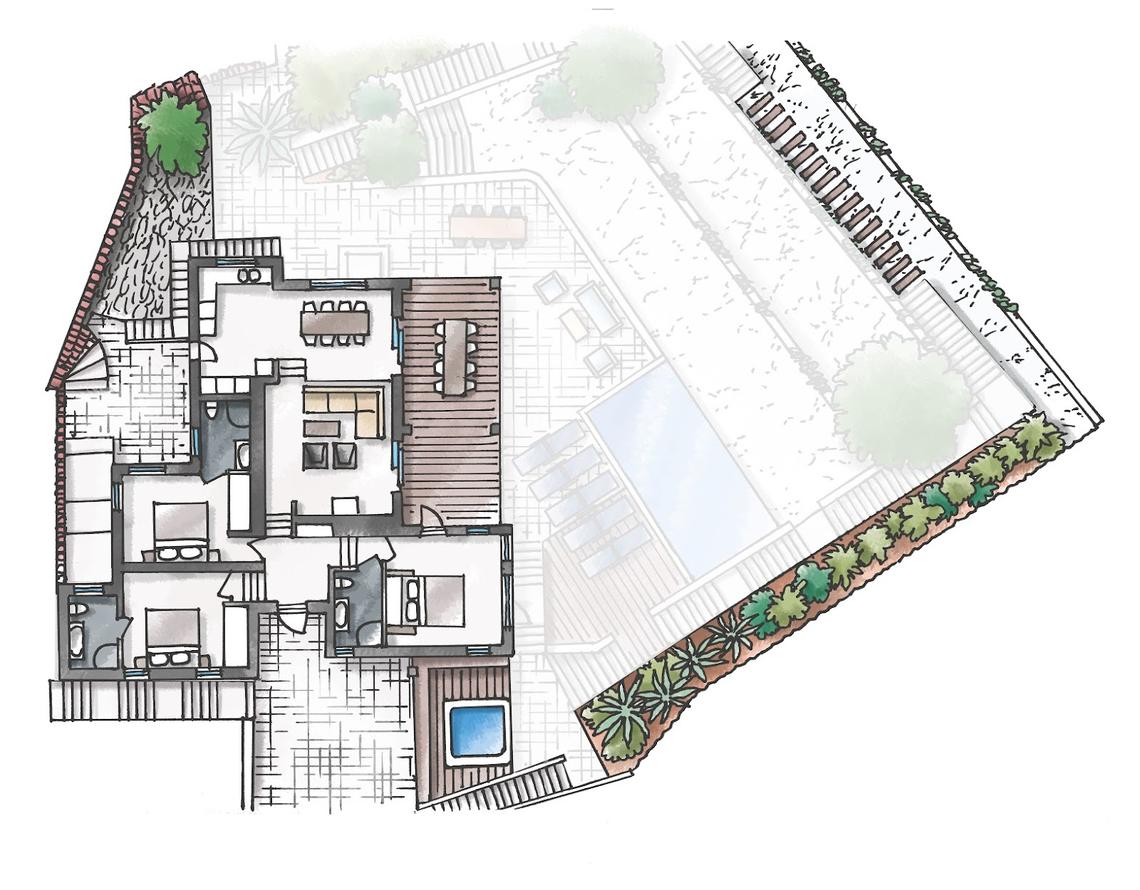 Mötas i flera olika rum inne och ute. Fullutrustade kök inne och ute. Pool, jacuzzi och massa aktiviteter runt hörnet för teambuilding.